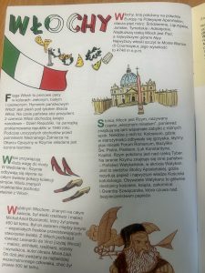 25 kwietnia nasze starszaki w ramach Klubu Europejskiego przeniosły się do Włoch. Poznały kilka ciekawostek dotyczących kultury, zabytków, muzyki i kuchni, tego pięknego kraju. Pokolorowały flagę tego państwa. Zatańczyły taniec „Tarantella” do włoskiej muzyki.